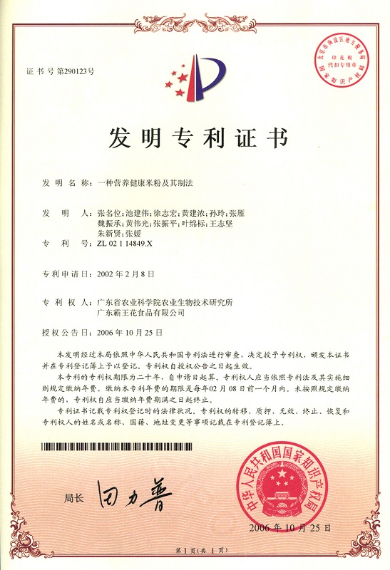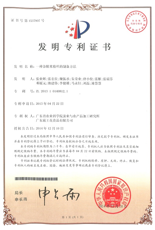 “科技創新,驅動發展”。公司有專業的科研團隊和管理團隊,不僅設立廣東省勞模和工匠人才創新工作室專注研發創新,同時擁有省、市級工程技術研究開發中心,多次承擔國家星火計劃項目和省科技廳重點科研攻關項目,是廣東省河源米粉地方標準的起草單位,獲得近70項專利,研發項目先后榮獲中華農業科技一等獎、廣東省科學技術進步三等獎、廣東省農業技術推廣獎一等獎、河源市科學技術進步獎一等獎等科技獎項。