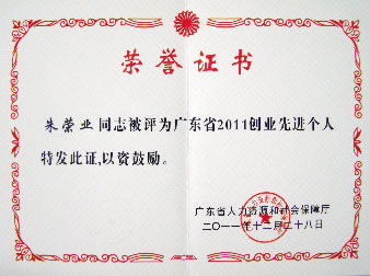我集團(tuán)執(zhí)行總裁朱榮業(yè)先生等廣東省內(nèi)100名創(chuàng)業(yè)先進(jìn)個(gè)人榮獲“廣東省2011創(chuàng)業(yè)先進(jìn)個(gè)人”榮譽(yù)稱(chēng)號(hào)。