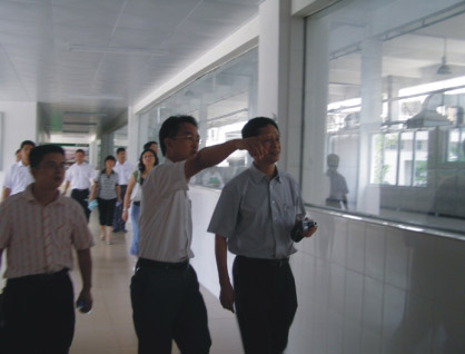 會后,考核組全體成員在朱榮業總經理的引導下參觀了我司生產車間,考核組領導對我司集“生產、科研、觀光”為一體的現代、環保、節能型規劃建設模式贊嘆不已。