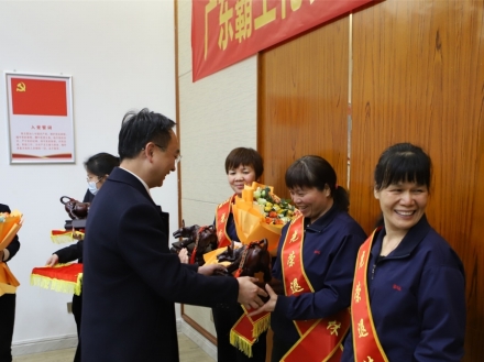 最后,董事長(zhǎng)朱日楊、總裁朱榮業(yè)為退休員工送上了獎(jiǎng)金、紀(jì)念品、鮮花及禮品。