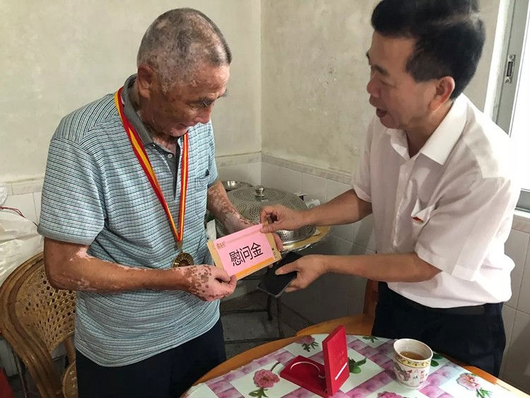 抵達災(zāi)區(qū)后,羅友望同志和黨委委員一行先后走訪了周觀仁、周國富等受災(zāi)老黨員,慰問中,羅友望同志和老黨員親切交談,詳細詢問他們受災(zāi)情況,了解他們的家庭、生產(chǎn)、生活、健康等情況,捐贈了米粉、食用油等物資并向他們送上慰問金,鼓勵他們在當(dāng)?shù)攸h委的領(lǐng)導(dǎo)下,勇于克服困難,堅定信心,積極面對生活,加快復(fù)產(chǎn)重建。老黨員表示非常感謝霸王花人的暖情關(guān)懷,會把黨的關(guān)懷和溫暖傳遞到受災(zāi)黨員和群眾中,會堅定信心,重建家園,永遠跟黨走。